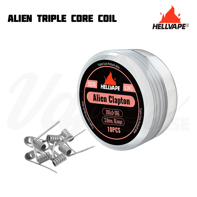 Ett 10-pack med Hellvape Alien Triple Core färdigsnurrade coils med hög kvalité från Hellvape som passar utmärkt till din RBA/RDA/RDTA!