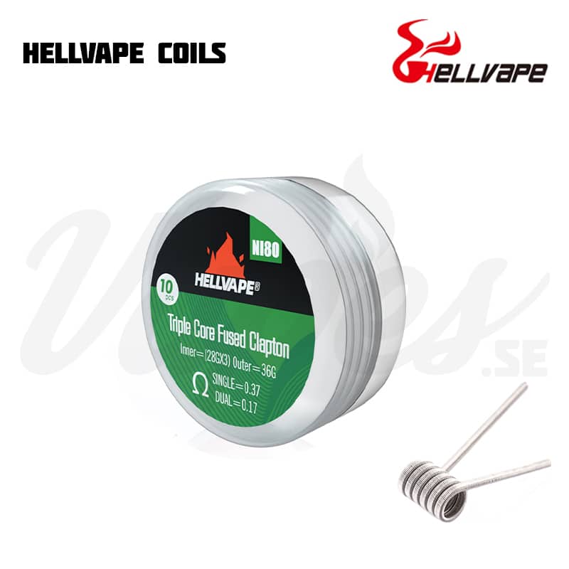 Ett 10-pack med Triple Core Fused Clapton Coils med hög kvalité från Hellvape som passar utmärkt till din RBA/RDA/RDTA!