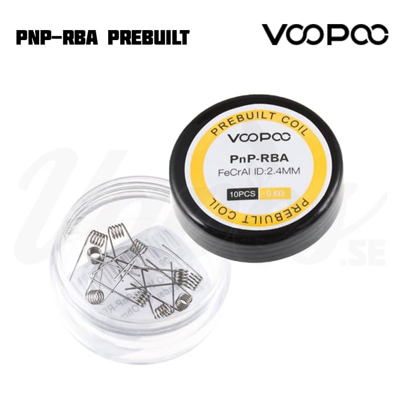 10 st färdiga coils som monteras i VooPoo PnP RBA coil som du hittar här. Resistansen är uppskattad till 0,6 ohm (±0,05 ohm) och materialet är FeCraAl. Coilsen har en inre diameter på 2,4 mm.