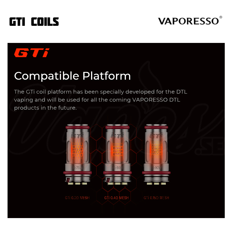 Vaporesso GTi Coils i 5-pack, Se den utförliga beskrivningen för information om kompatibilitet.