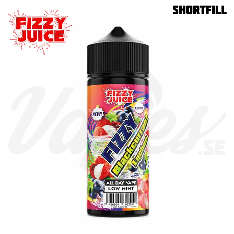 Blackcurrant Lychee från Fizzy! Bärig smak av syrliga svarta vinbär och söt litchifrukt möter kylig mentol i denna uppfriskande vape e-juice.