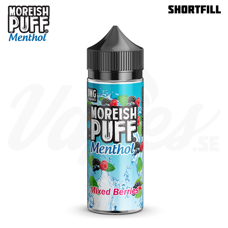 Mixed Berries i Moreish Puff Menthol-serien är en e-juice med smak av kylig mentol och mixade bär.
