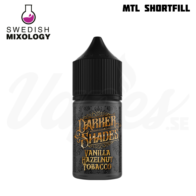 Swedish Mixology's Darker Shades Vanilla Hazelnut Tobacco i MTL format, med smak av mörka toner av karamelltobak, med vanilj- och hasselnötssirap.