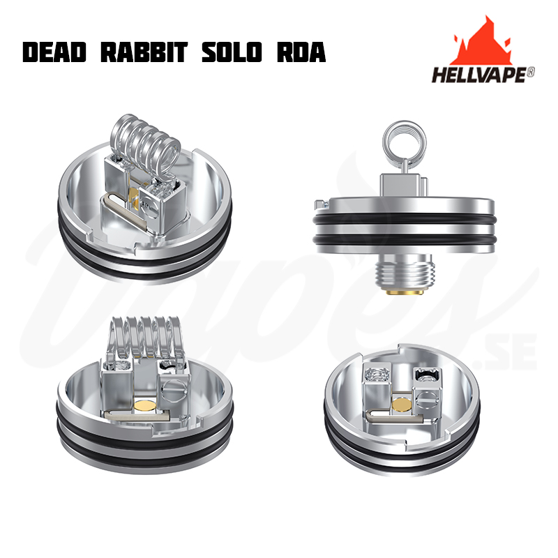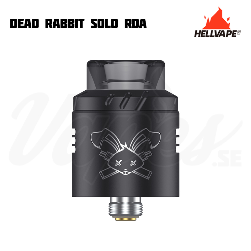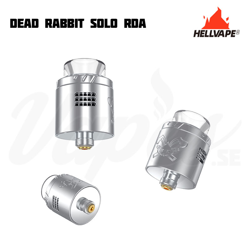 Hellvape Dead Rabbit Solo är en nyhet i Dead Rabbit-serien som är 22 mm i diameter. Det justerbara luftflödet med honeycomb-design tillåter användaren att enkelt ändra luftflödet som är anpassat både för RDL och MTL eftersom det kan anpassas för att styra luftflödet till coilen i både höjd och sidled. Den kompakta designen utlovar tydlig smak och god ångkapacitet. Det medföljer även en squonk-pin (BF-pin) för en större flexibilitet.