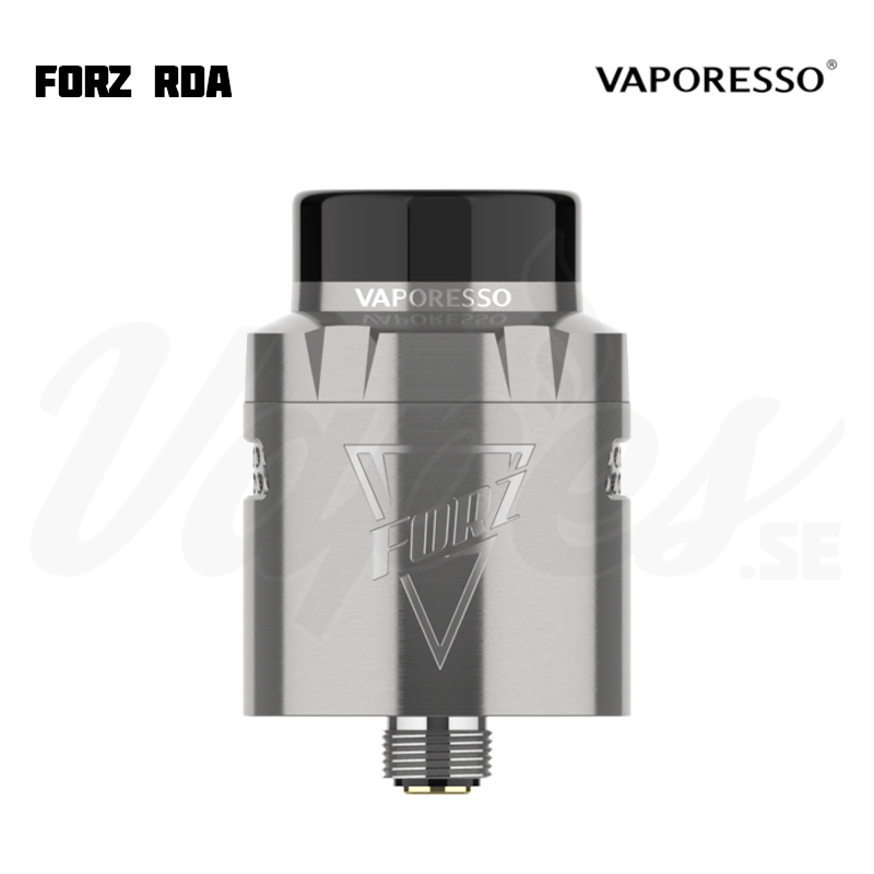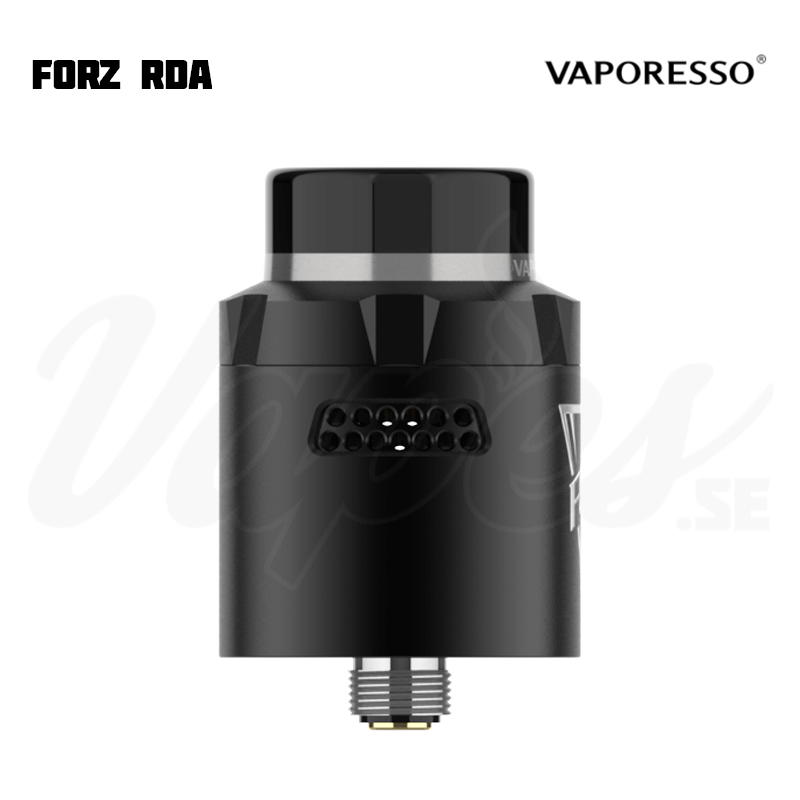 Vaporesso FORZ RDA är en 24 mm diameter RDA från Vaporesso med två olika justerbara luftflöden (öppet eller honeycomb) och stöd för både 810-drip tips samt 510 drip tips (via medföljande adapter).