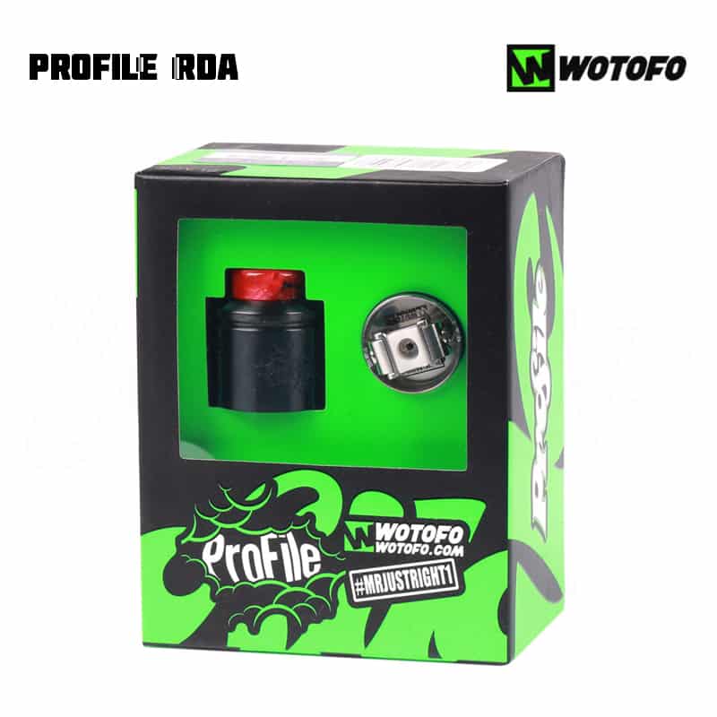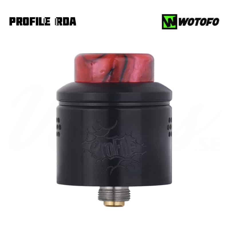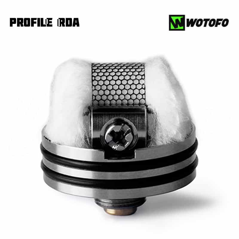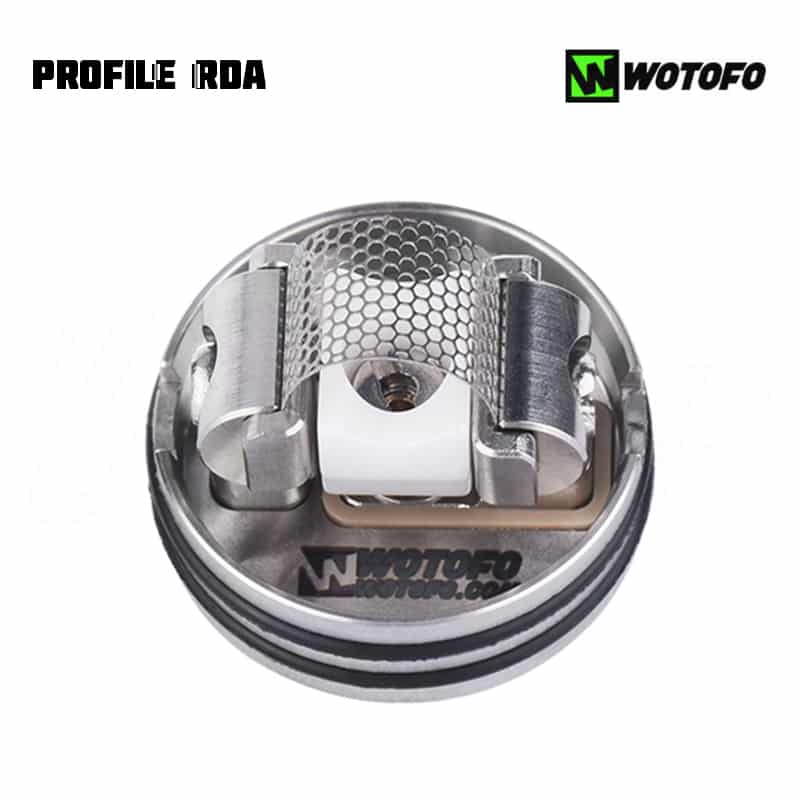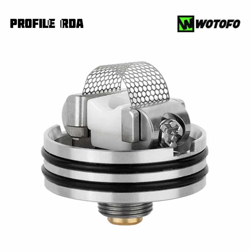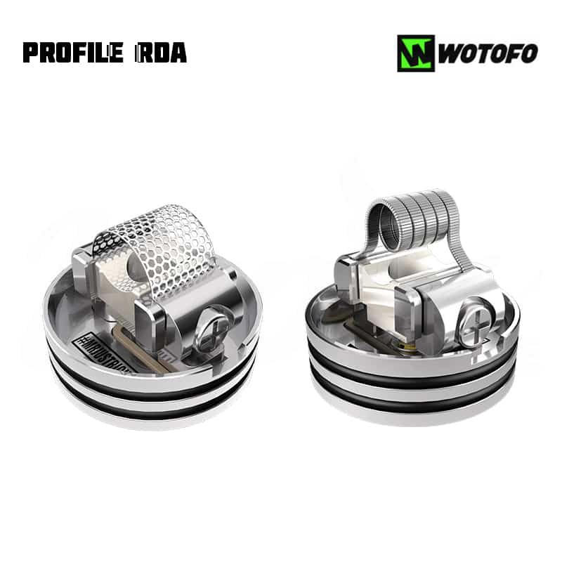 Wotofo Profile RDA är designad av Wotofo och Mr.JustRigh1. Profile RDA använder sig främst av mesh coils (medföljer 0,18 ohm, som klarar av 40-60 W). Mesh coils blir varma snabbt och därför krävs inte lika hög watt. Med Mesh får du även extra mycket smak. I byggdäcket finns ett fjädrat keramikblock som ser till att bomullen och meshtråden alltid får kontakt. Förutom mesh coils så kan du även montera traditionella coils. Luftflödet sitter på sidorna och är justerbart. Denna RDA är främst för squonk och kommer med en BF-pin.