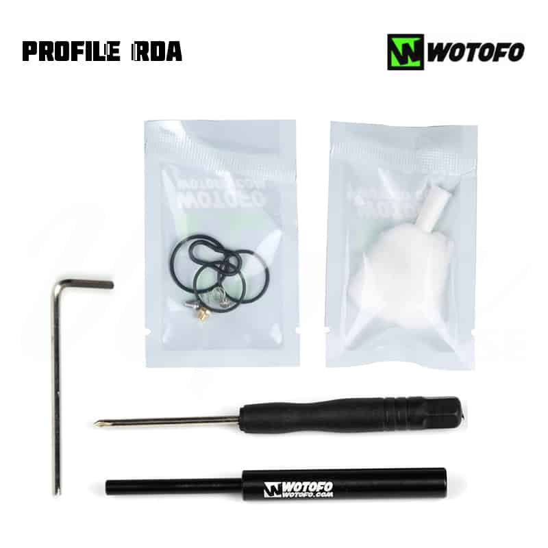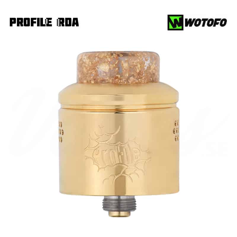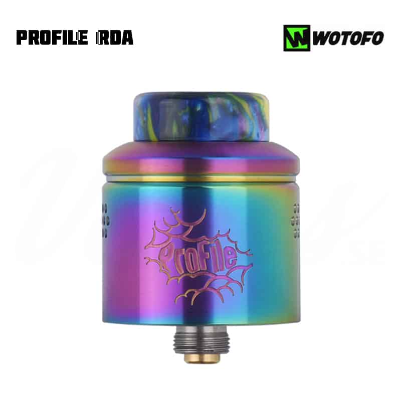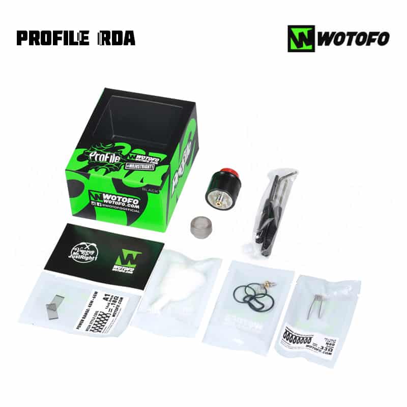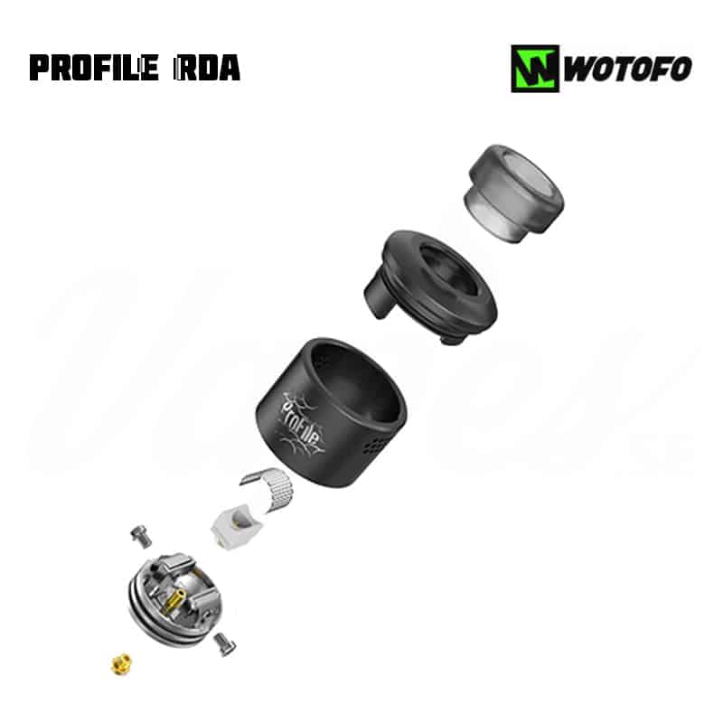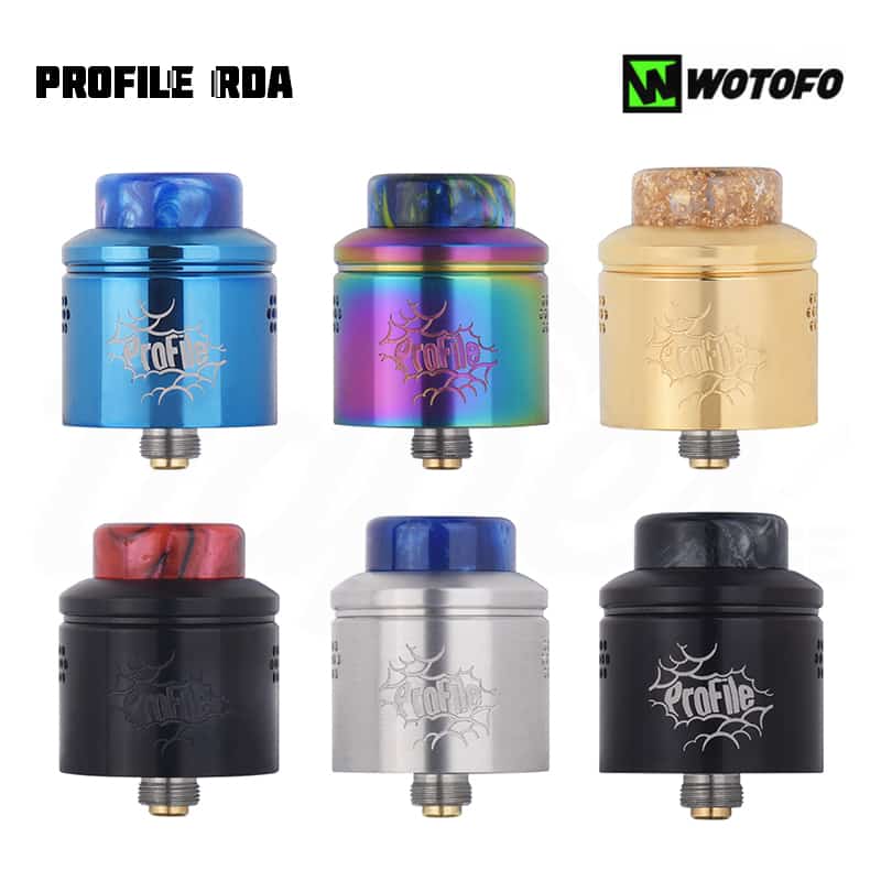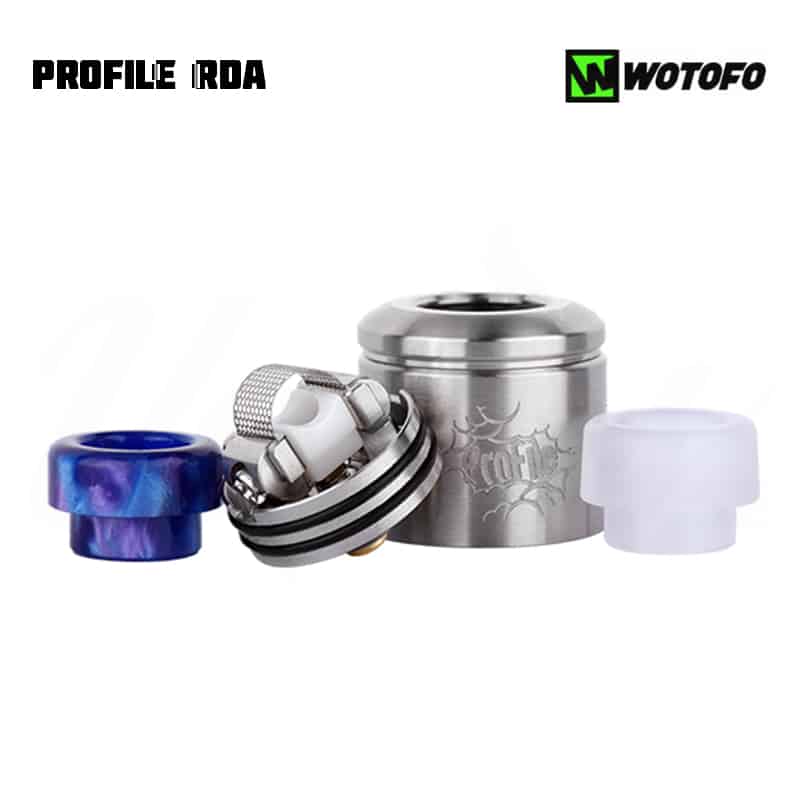 Wotofo Profile RDA är designad av Wotofo och Mr.JustRigh1. Profile RDA använder sig främst av mesh coils (medföljer 0,18 ohm, som klarar av 40-60 W). Mesh coils blir varma snabbt och därför krävs inte lika hög watt. Med Mesh får du även extra mycket smak. I byggdäcket finns ett fjädrat keramikblock som ser till att bomullen och meshtråden alltid får kontakt. Förutom mesh coils så kan du även montera traditionella coils. Luftflödet sitter på sidorna och är justerbart. Denna RDA är främst för squonk och kommer med en BF-pin.