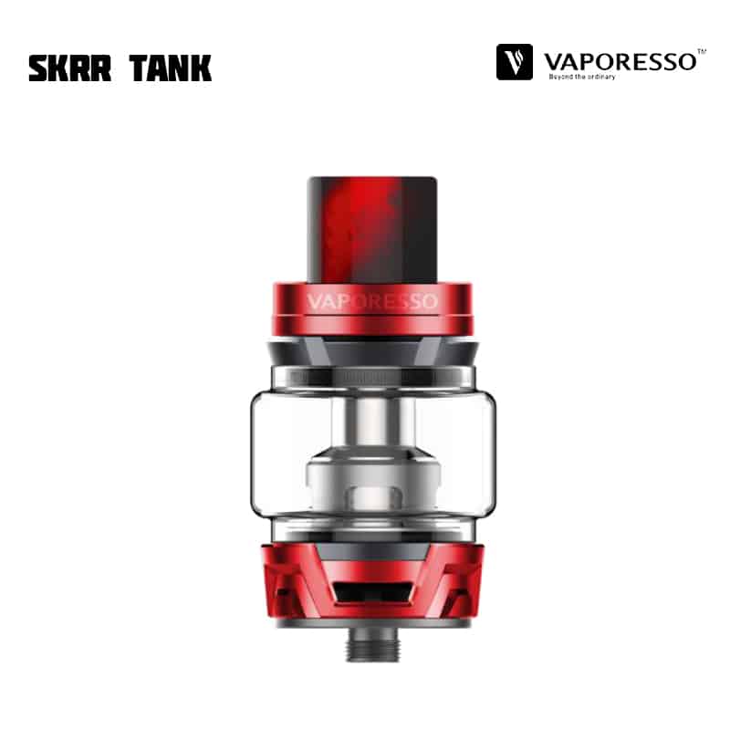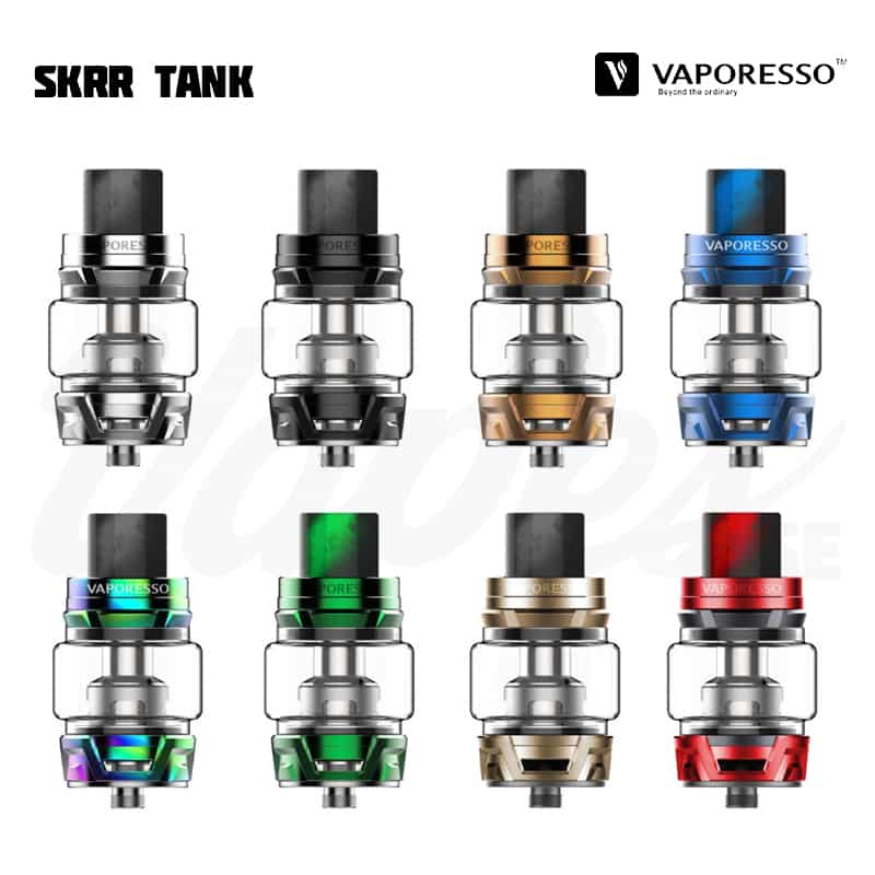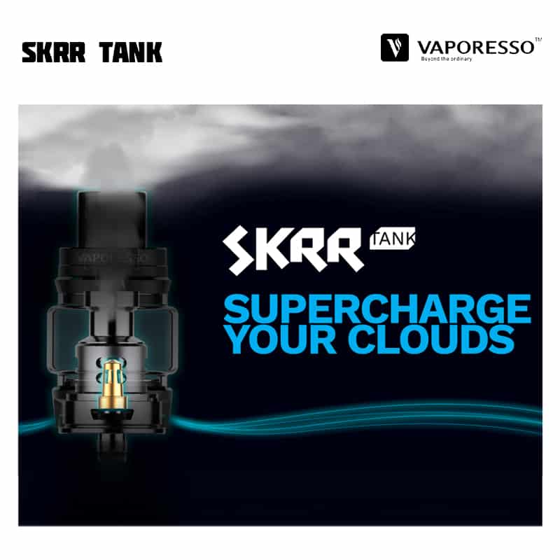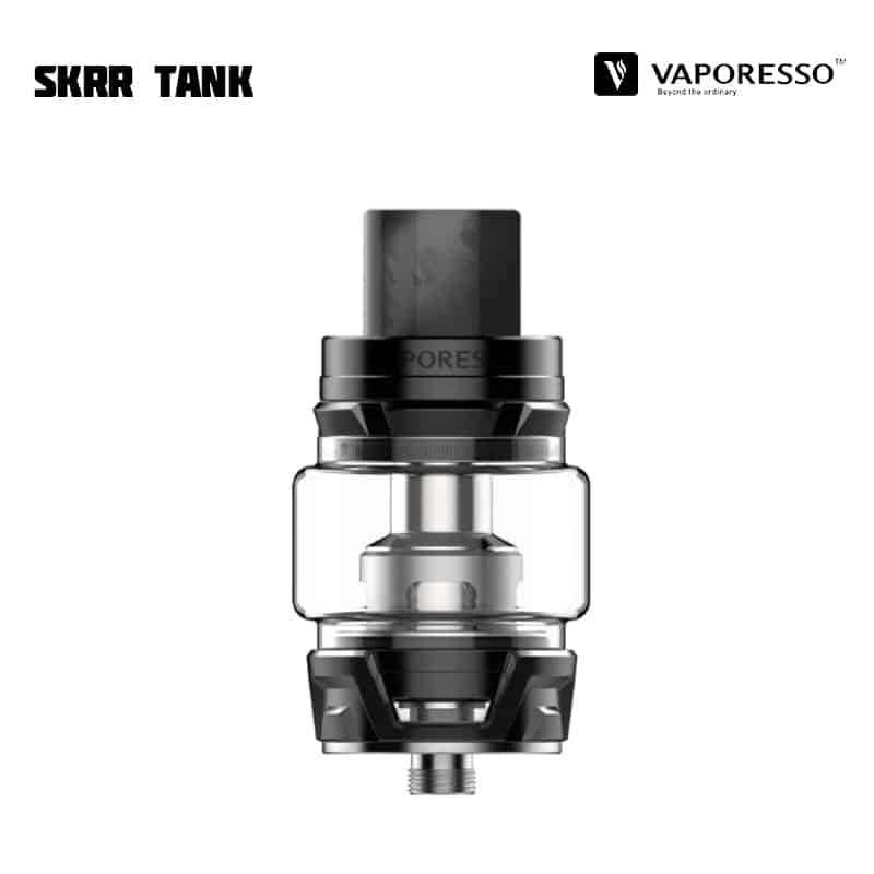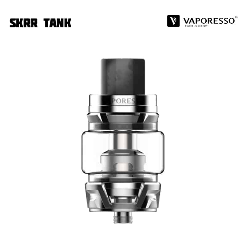 Vaporesso SKRR Tank är en 30 mm diameter tank med 8 ml vätskekapacitet och ett quadflow (QF) luftflöde på botten av tanken som är justerbart. Tankens design reducerar risken för spit-back och läckage samt fokuserar på att producera mycket ånga och smak. SKRR är kompatibel med alla tidigare GT Coils, men kommer med två nya typer av coils – QF Meshed (0,2 ohm), QF Strips (0,15 ohm) och den tidigare GT CCELL (0,15 ohm). De nya coilsen använder sig av linfibrer i kombination med ekologisk bomull, för längre hållbarhet och absorptionsförmåga. Tanken fylls på via skjutbart topplock.