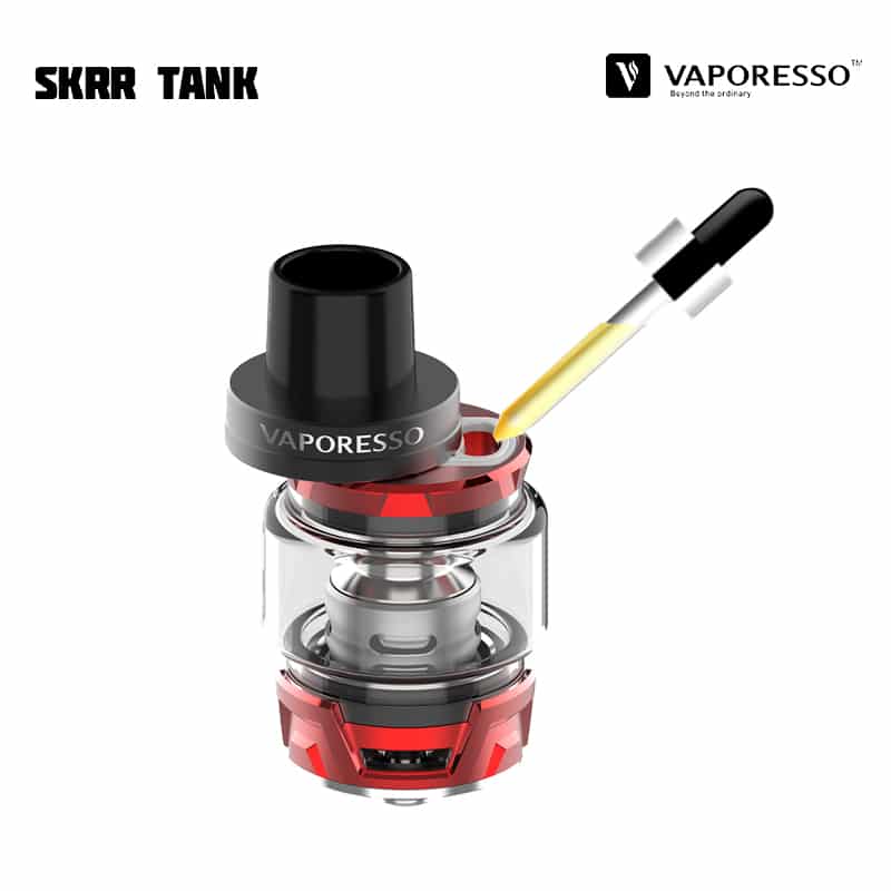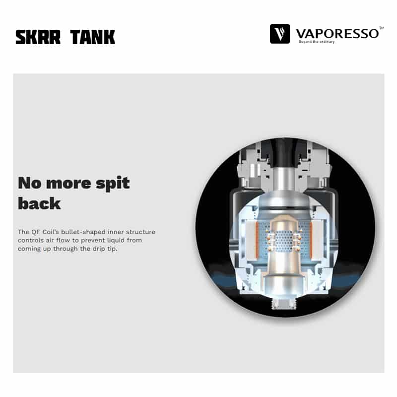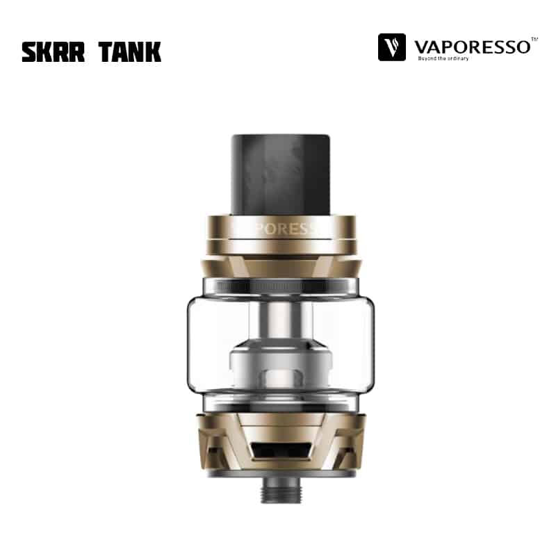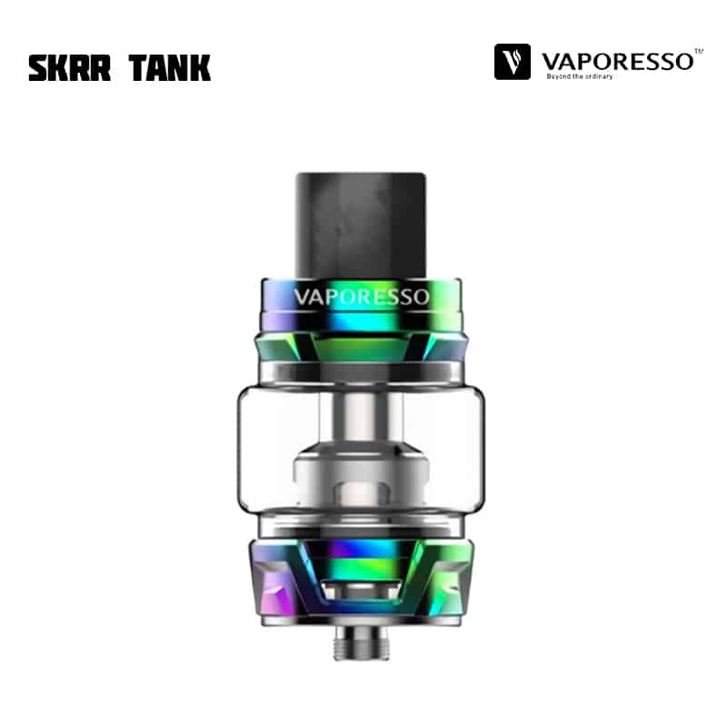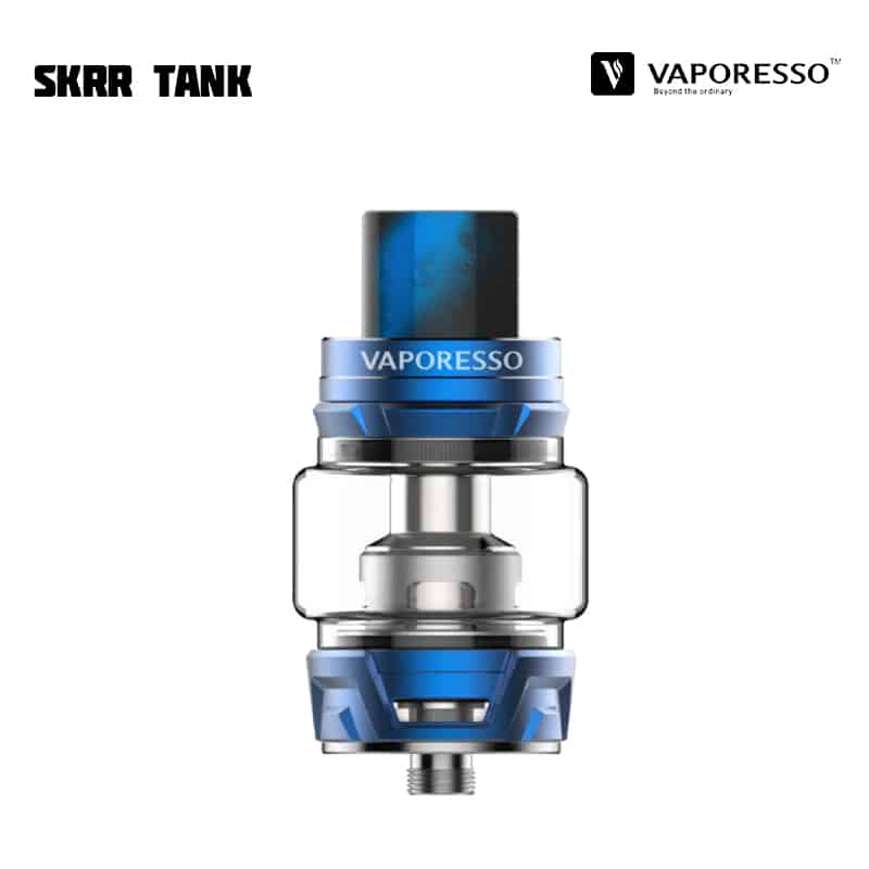 Vaporesso SKRR Tank är en 30 mm diameter tank med 8 ml vätskekapacitet och ett quadflow (QF) luftflöde på botten av tanken som är justerbart. Tankens design reducerar risken för spit-back och läckage samt fokuserar på att producera mycket ånga och smak. SKRR är kompatibel med alla tidigare GT Coils, men kommer med två nya typer av coils – QF Meshed (0,2 ohm), QF Strips (0,15 ohm) och den tidigare GT CCELL (0,15 ohm). De nya coilsen använder sig av linfibrer i kombination med ekologisk bomull, för längre hållbarhet och absorptionsförmåga. Tanken fylls på via skjutbart topplock.