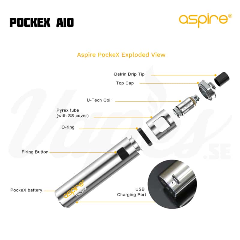 Aspire PockeX är en allt-i-ett e-cigarett framtaget för nybörjare som vill sluta röka. Inga inställningar krävs då allt justeras automatiskt.