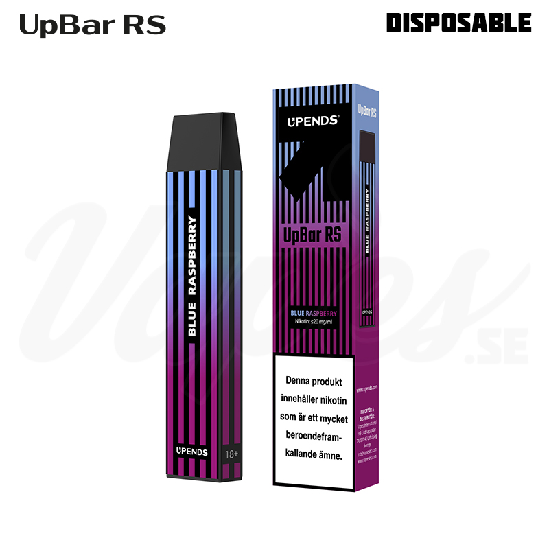 UpBar RS Blue Raspberry är en engångs vape (disposable), med smak av blåhallon & mentol. Nikotinstyrka är 20 mg/ml (2,0 %) och är av typen nikotinsalt.