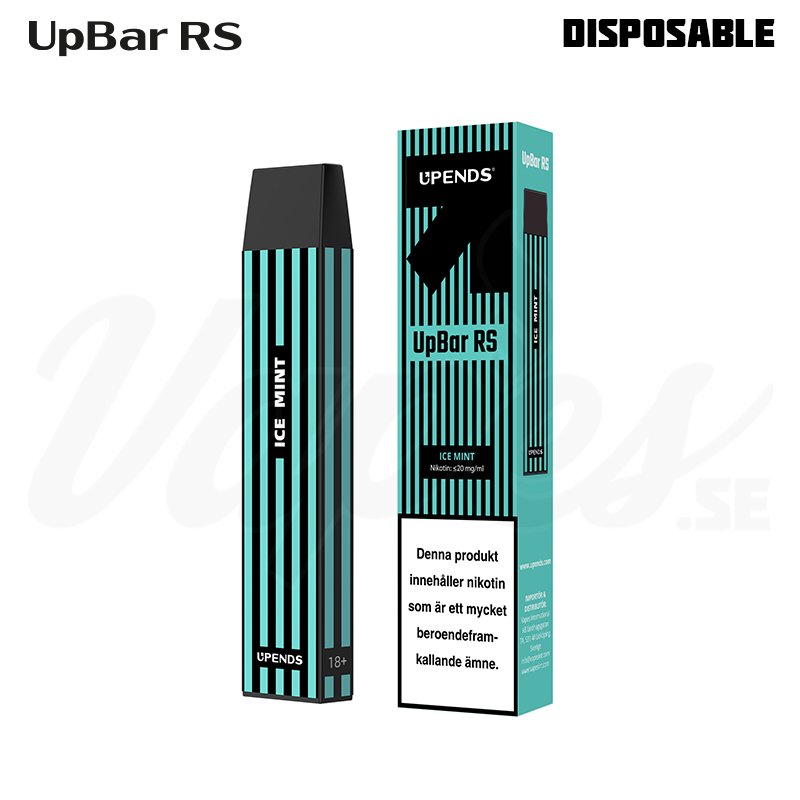 UpBar RS Ice Mint är en engångs vape (disposable), med smak av mint & mentol. Nikotinstyrka är 20 mg/ml (2,0 %) och är av typen nikotinsalt.