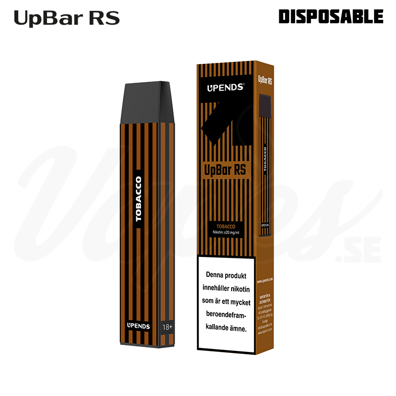 UpBar RS Tobacco är en engångs vape (disposable), med smak av klassisk tobak. Nikotinstyrka är 20 mg/ml (2,0 %) och är av typen nikotinsalt.