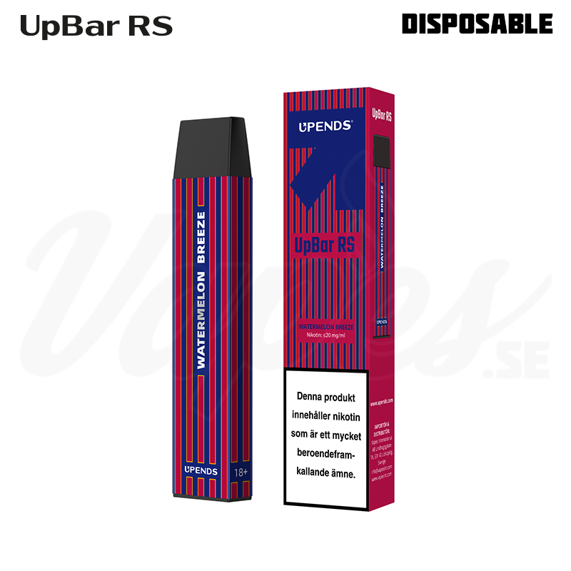 UpBar RS Watermelon Breeze är en engångs vape (disposable), med smak av vattenmelon & mentol. Nikotinstyrka är 20 mg/ml (2,0 %) och är av typen nikotinsalt.