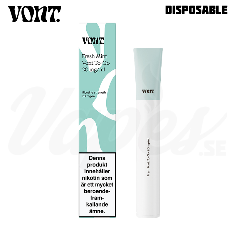 Fresh Mint från svenska VONT To-Go serien är en engångsvape med 20 mg nikotinsalt. VONT To-Go räcker upp till 800 puffar. Fresh Mint har en smak av spearmint.