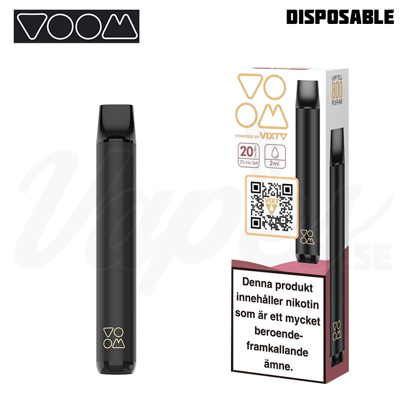 VOOM Mini är påfyllda och uppladdade e-cigaretter som aktiveras direkt vid inhalering. Inga inställningar krävs och produkten är redo att användas omedelbart. De är inte påfyllnings- eller uppladdningsbara. När smaken avtar eller batteriet tagit slut kasserar du produkten. Se den svenska bipacksedeln för mer information om innehåll, förvaringsinstruktioner, varningar om nikotin med mera.