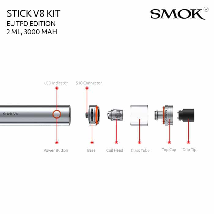 SMOK Stick V8 Kit (2 ml, 3000 mAh, TPD) – Utgått