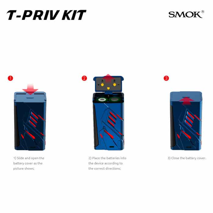 OBS! Det medföljer inga 18650-batterier. Du kan köpa dessa separat här. T-Priv kräver 2 stycken. Ladda via en extern batteriladdare för säkrast laddning.