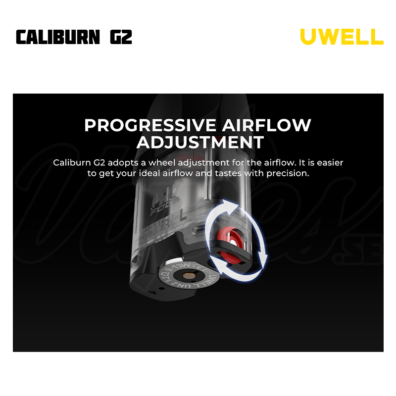De nya G2 poddarna kommer med ett justerbart luftflöde, via ett roterbart hjul som låter dig ställa in luftmotståndet enligt personlig preferens.