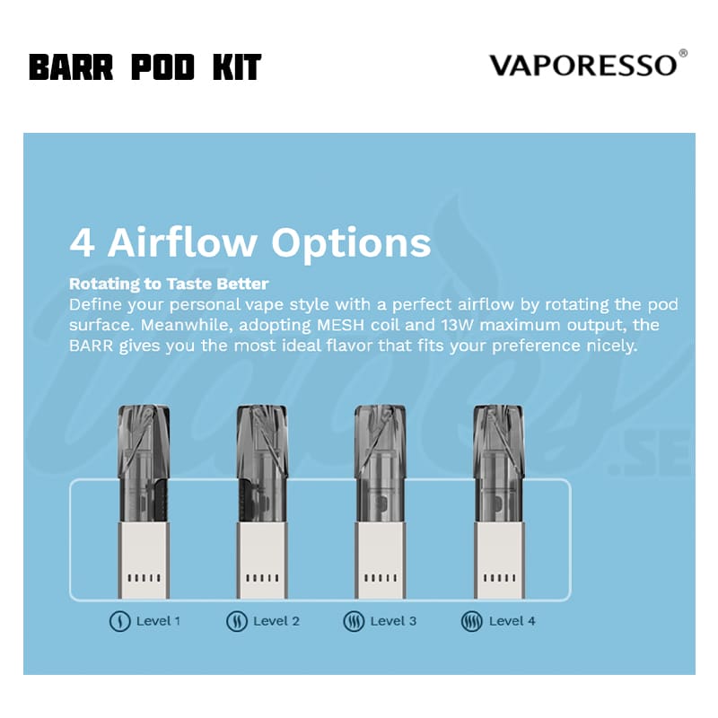 - 2 st Vaporesso BARR Pod (1,2 ohm Mesh, 1,2 ml)