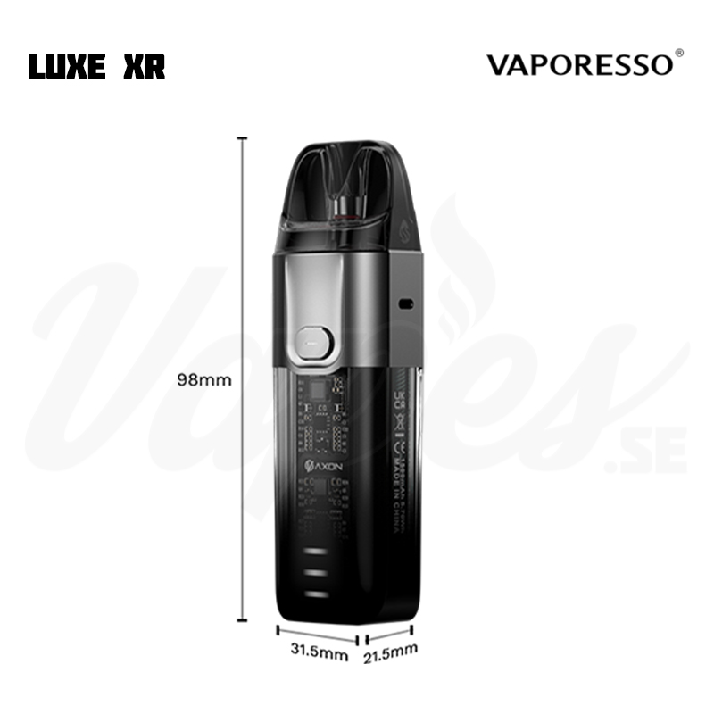 Vaporesso LUXE XR är ett nytt podsystem i LUXE-serien, anpassad för MTL och RDL med upp till 40 W effekt. Watt ställs in automatiskt, vilket innebär att du inte behöver tänka på några inställningar. LUXE XR har ett inbyggt batteri på 1500 mAh som laddas via USB C (sladd medföljer). Det finns två luftflöden att välja mellan per pod och du byter luftflödet genom att rotera på podden.