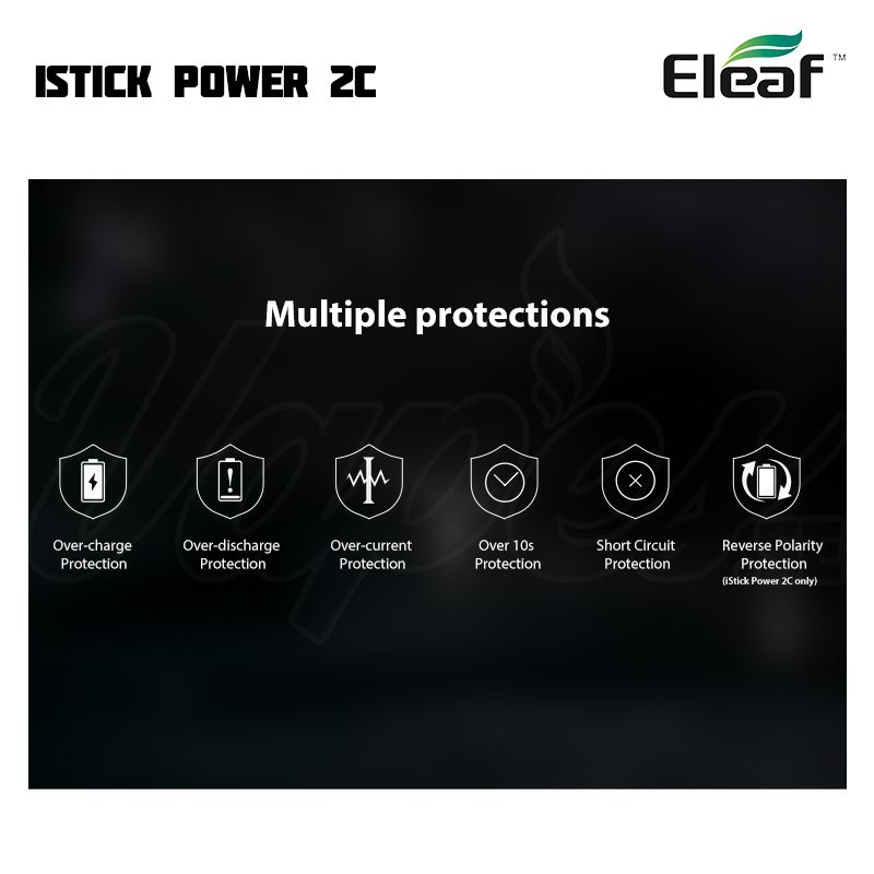 För att du som användare ska få en så säker upplevelse som möjligt, har Eleaf utrustat den med skydd mot överladdning, urladdning, för hög volt, kortslutning, omvänd polaritet och automatisk cut-off om knappen hålls inne i 10 sekunder.