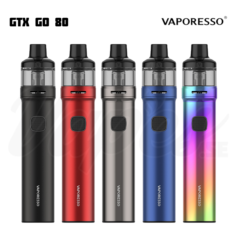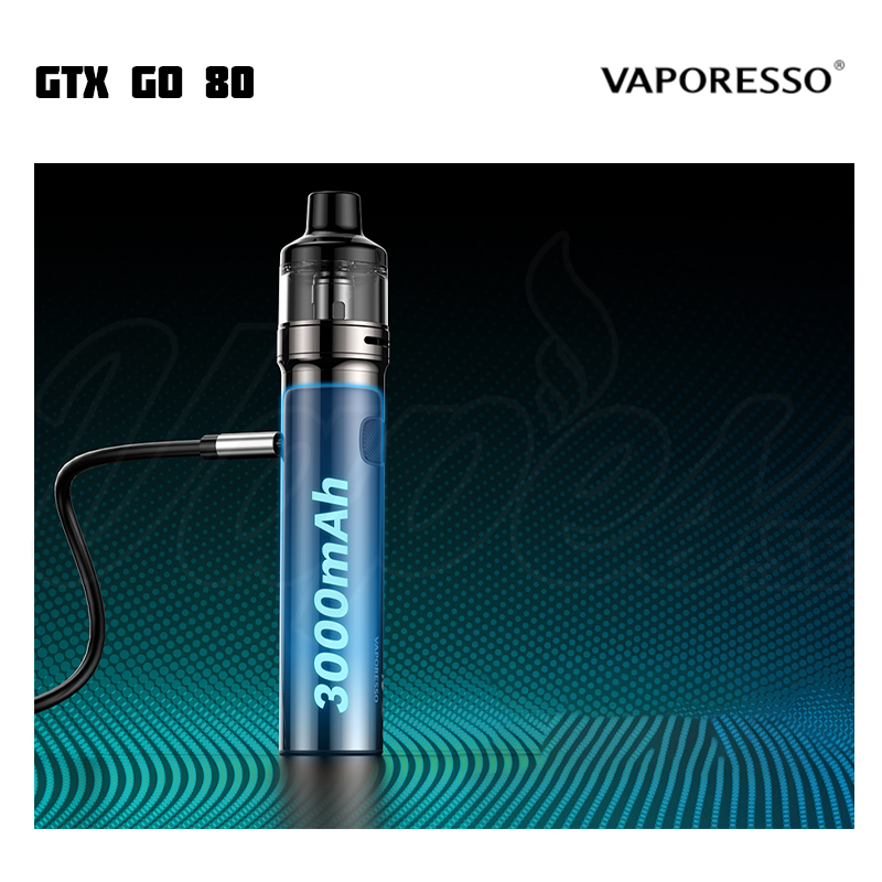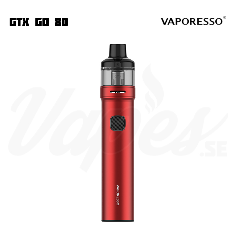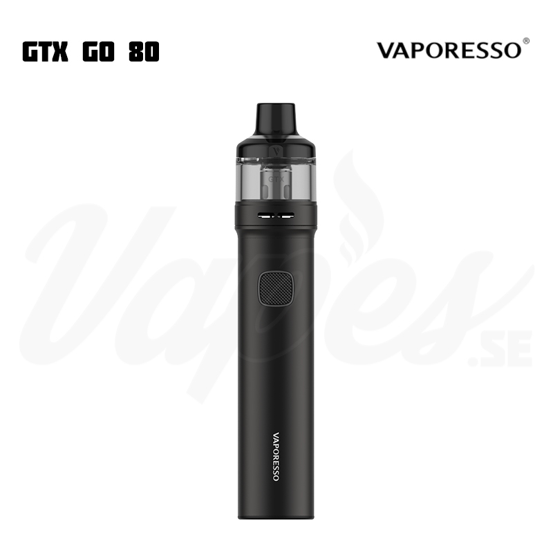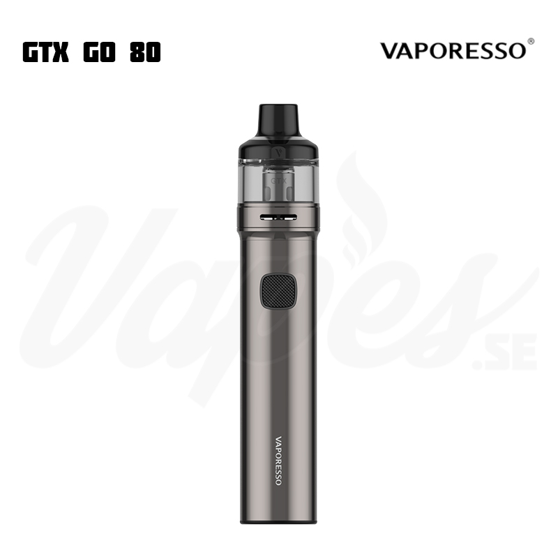 Vaporesso GTX GO 80 är en ny pennformad vape som går upp till 80 W, har en vätskekapacitet på 5 ml och stödjer Vaporesso GTX Coils. Påfyllning sker via skruvbart topplock och inställningarna är automatiska beroende på coil. Batteriet har en kapacitet på 3000 mAh och laddas via medföljande USB C-kabel.