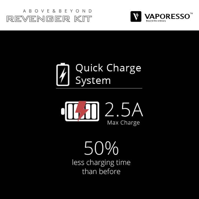 Vaporesso Revenger Kit drivs av två stycken 18650-batterier. Batterier ingår ej, men du hittar kompatibla batterier hos oss här. Även om modden klarar av laddning via USB-ingången, så rekommenderar vi alltid att du laddar batterier via en extern batteriladdare, för mindre slitage (längre livslängd) på din mod och dina batterier.