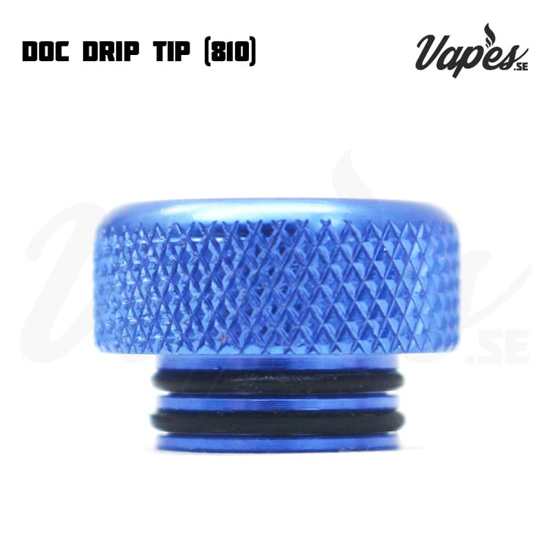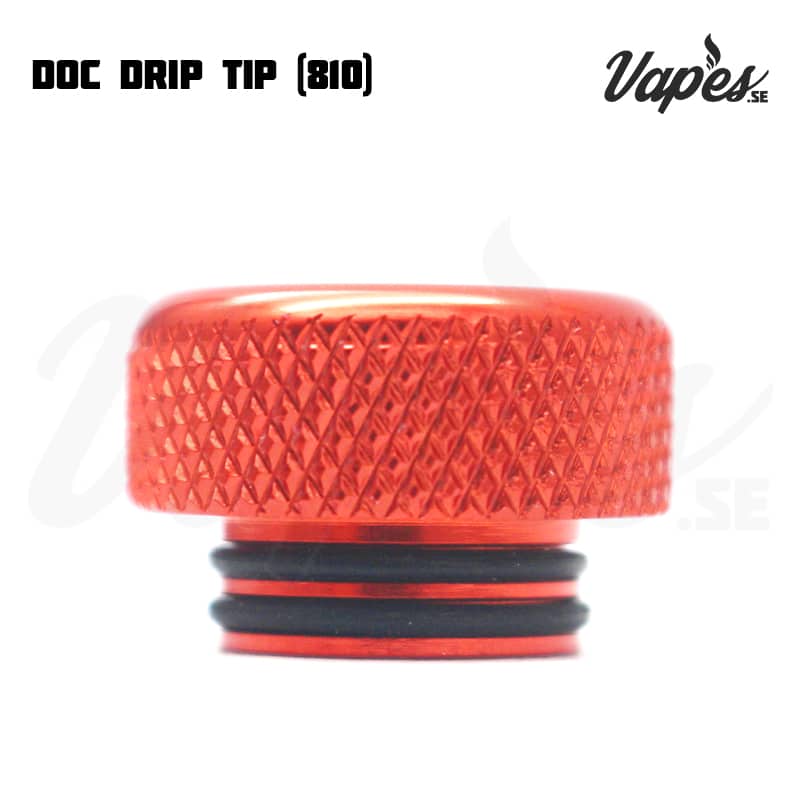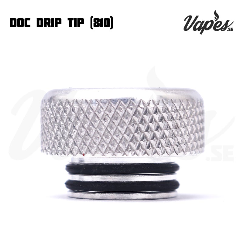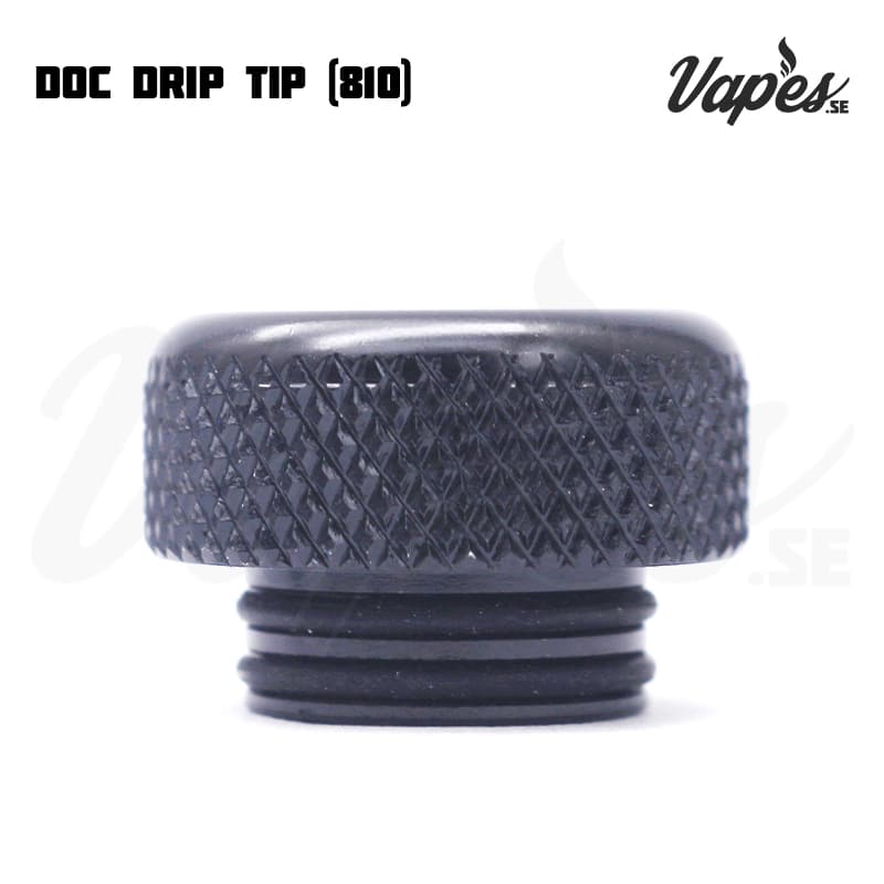 Doc drip tip är ett brett men kortare munstycke i det populära utförandet “doc” med räfflad utsida. Passar till clearomizers/RDA/RTA/RDTA med stöd för 810-driptips.