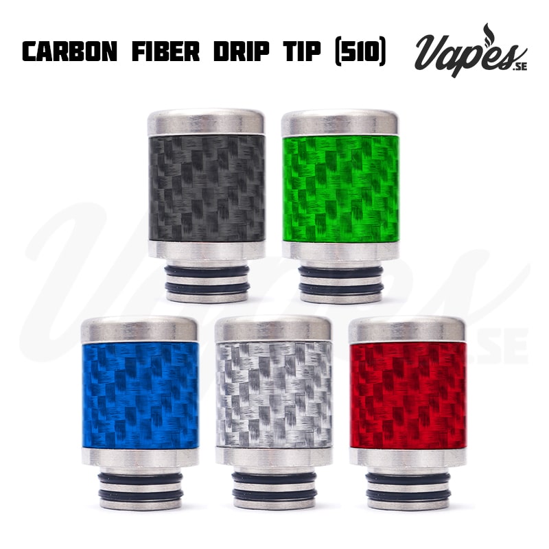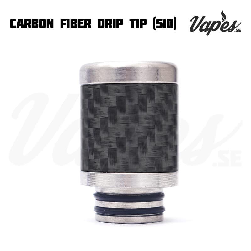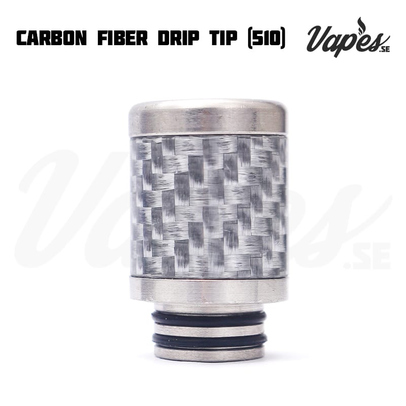 Ett munstycke (drip tip) i rostfritt stål och karbonfinber-mönstrad utsida som passar till clearomizers/RDA/RTA/RDTA med stöd för 510-driptips.